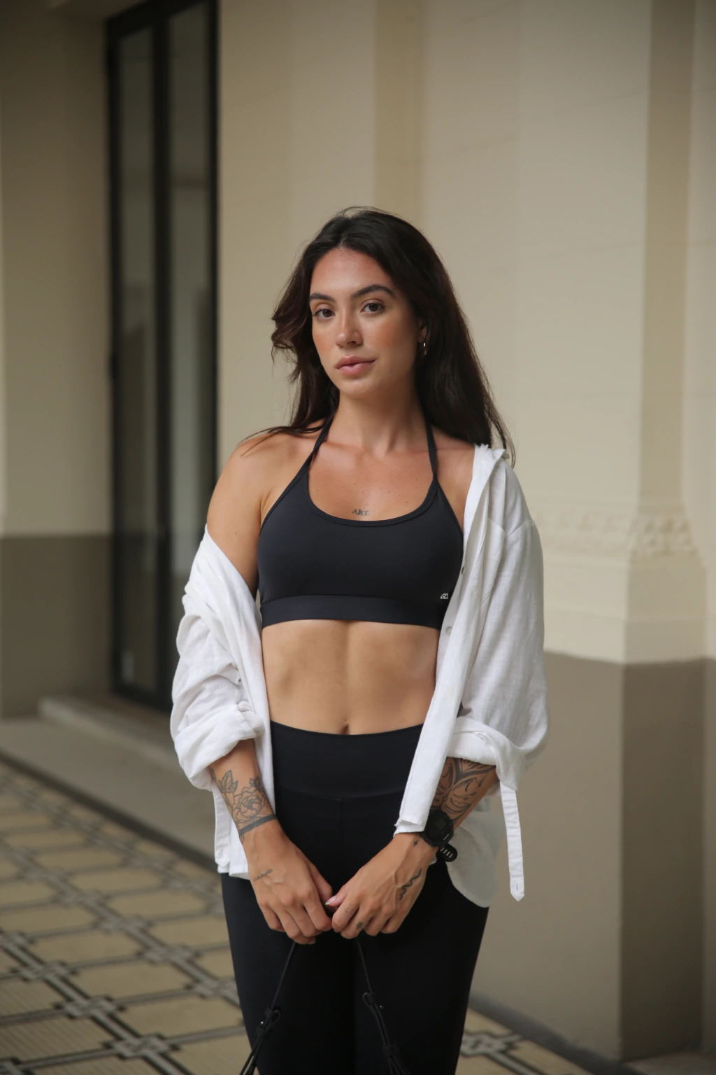 É aquele top que você vai querer usar em todos os treinos, principalmente se for de superior! Com design minimalista e clean, esse com certeza vai virar o seu favorito por favorecer o colo feminino e as costas. Perfeito para quem busca versatilidade sem abrir mão de elegância, sua alça no pescoço é ajustável e leva um charminho na ponta.